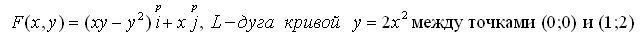 A=int (xy-y^2)^p dx+x^p dy по дуге на пораболе y=2x^2 между точками (0,0) (1,2)