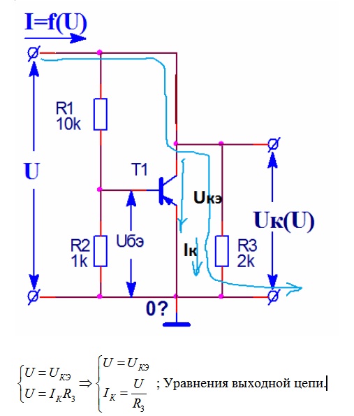 Не подскажите, как в данной схеме правильно составить ур-е выходной цепи, чтобы в нём одновременно участвовали все три переменные (U , Iк и Uкэ) ?