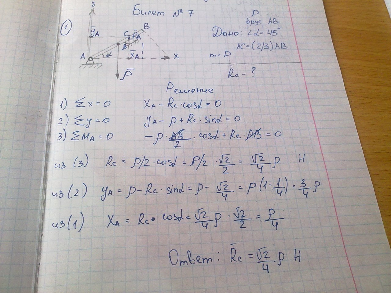 В статике обязательно делайте проверку. Составляйте уравнение суммы моментов относительно другой точки. В нём поучаствуют найденные реакции и должен получиться ноль.