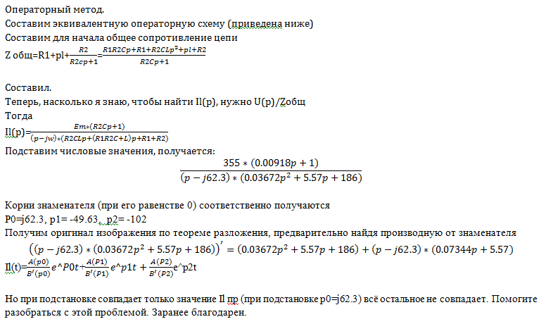 Объясните пожалуйста, как это вы определили синусоиду в операторной форме. И ещё, непонятно как то оставлено общее сопротивление. Что то ничего непонятно. Мы так не решали ещё)