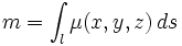 Масса m кривой l, линейная плотность которой вдоль кривой l равна μ(z, y, z) выражается интегралом