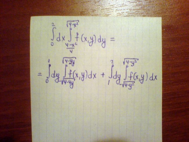 Область интегрированию будет разбита на две области: