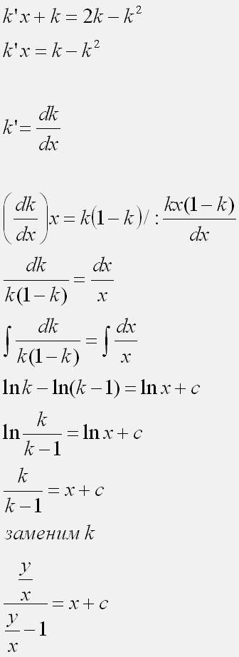 делаем замену (y/x)=k y=kx y'=k'x+k
