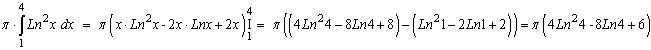 остается V=П(4Ln^2(4)-8Ln(4)+10) это и будет окончательный ответ или всетаки с четверками что то делать?