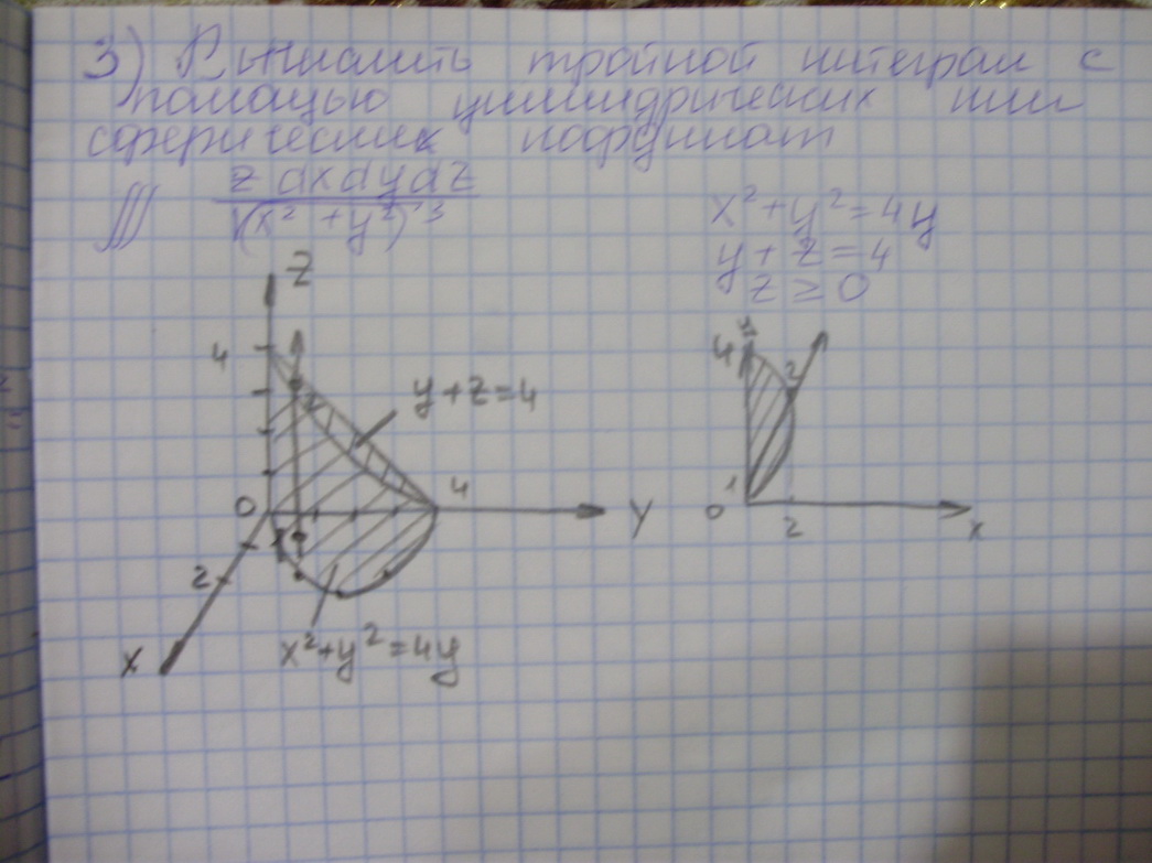 вот исправленный вариант: int(0 п/2)dfi int(0 4sin(fi))rdr int (0 4)zdz/r^3