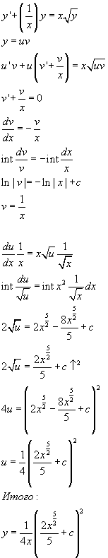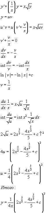 Полная версия: y'+(1/x)y=xy^1/2 > Дифференциальные уравнения