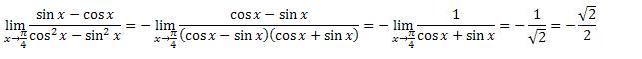 c)lim x=>П/4 sinx - cosx(числитель)/знаменатель =cos2x