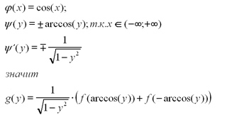 Распределение случайной величины Х задано плотностью распределения f(x) на всей прямой. Случайная величина Y = cos(X). Требуется найти плотность распределения Y.