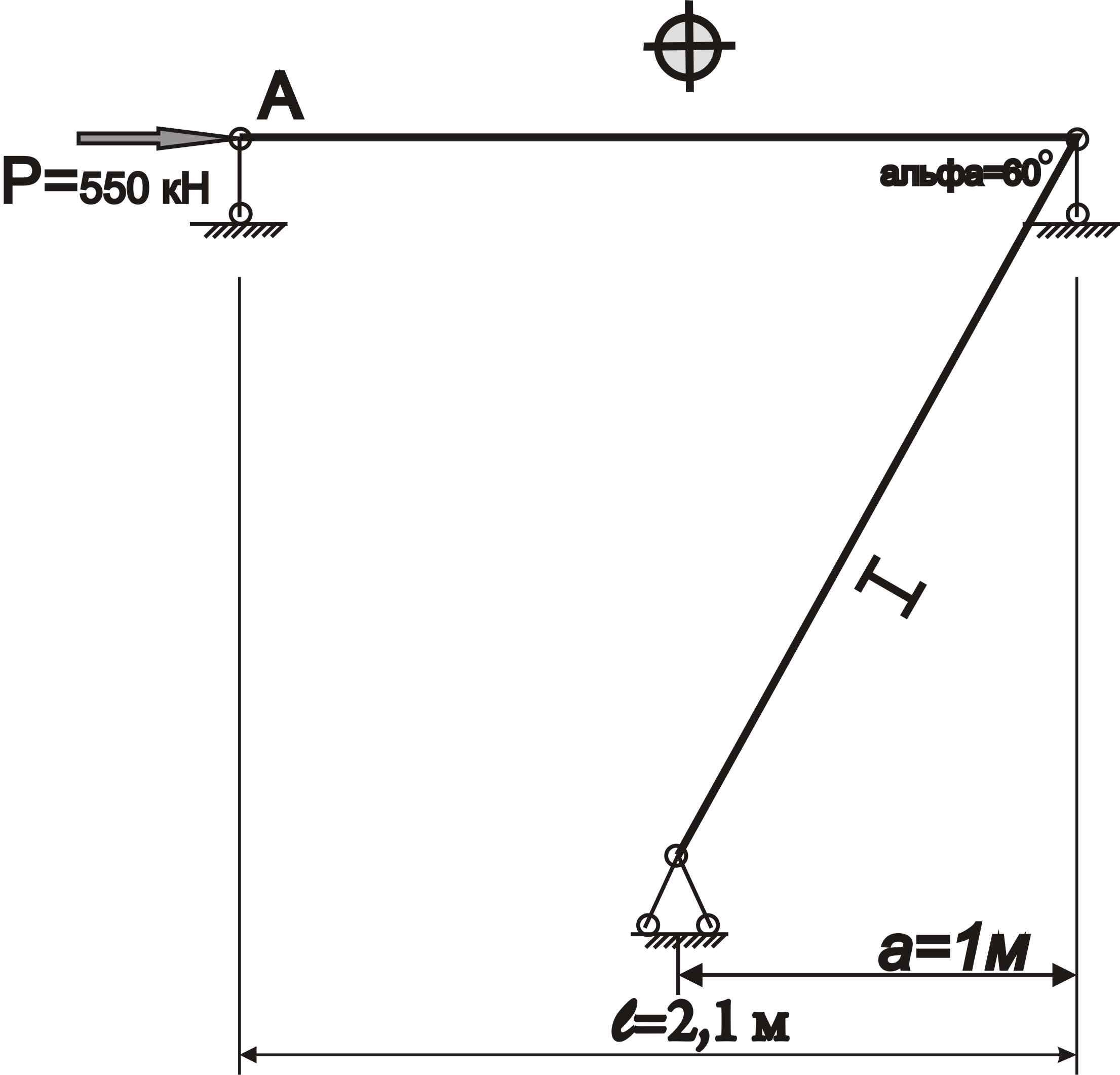 рассмотрим точку А: Fx=0 P-Nac=0 следовательно Nac=P=550кН