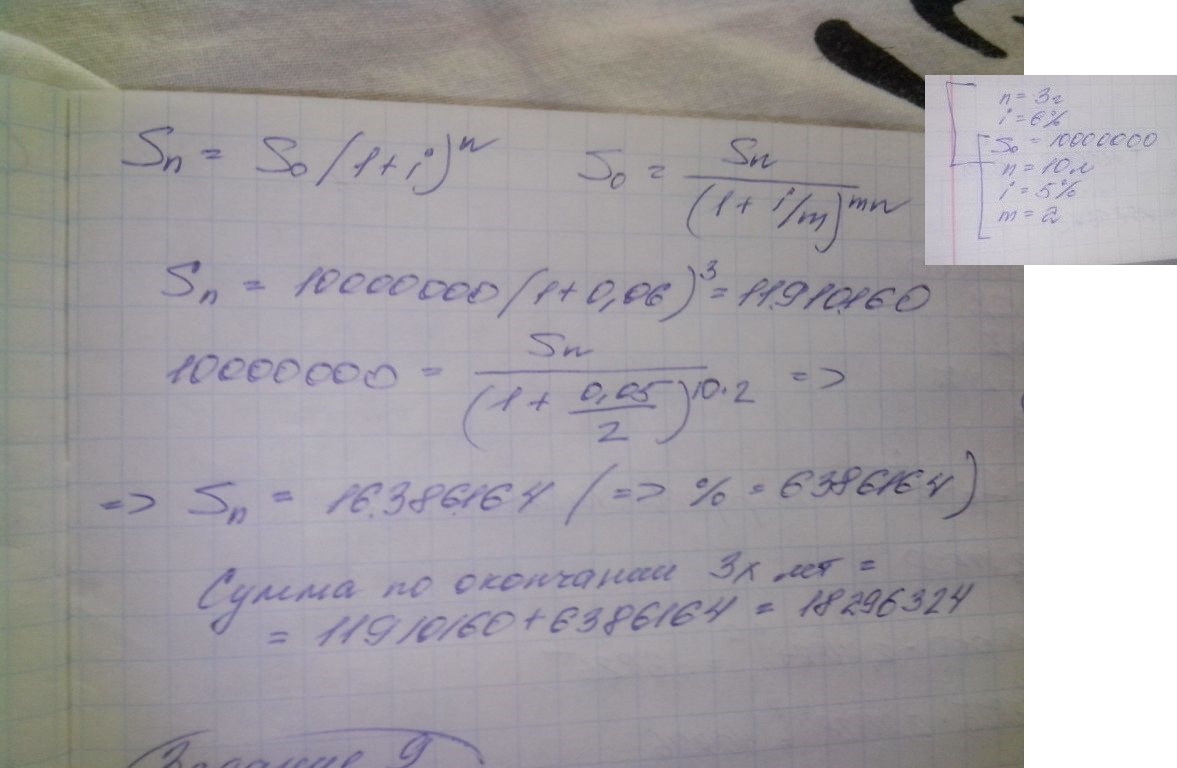 2)Найти датированную сумму по окончании 3 лет при 6 % годовых , эквивалентную 10 000 000 руб . вместе с процентами за 10 лет при ставке 5 % годовых с полугодовым начислением процентов .