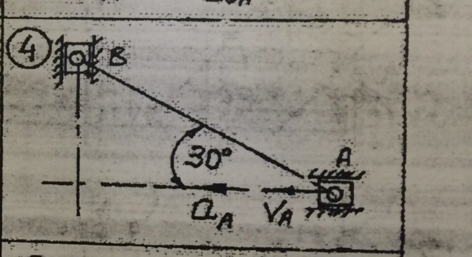 Для заданного положения механизма найти скорость и ускорения точек А и В, указанных на схеме (ОА=0,25 м; АВ=0,35 м; V(А) =3 м /с; а (А) =2 м/с^2)Нажмите для просмотра прикрепленного файла