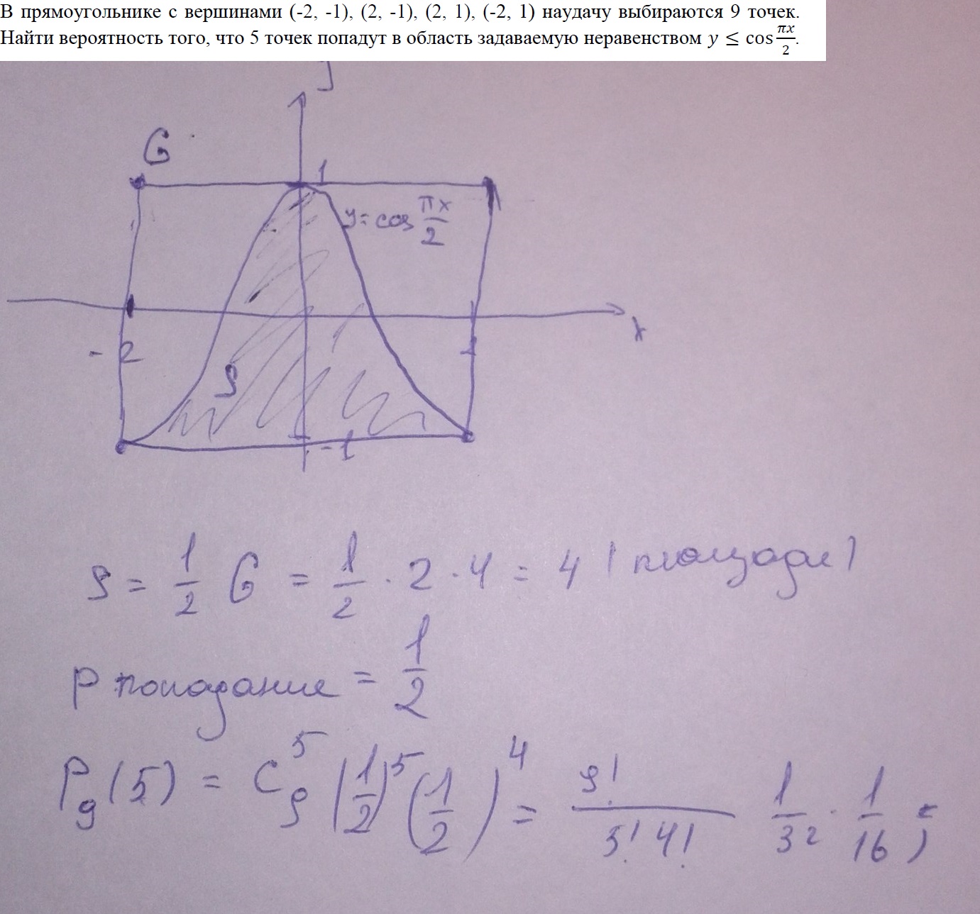 Надо обосновать, почему площадь S равна 4. Для этого же нужно вычислить интеграл. А в вашем решении голословно написано, что S=(1/2)G. Откуда это следует?