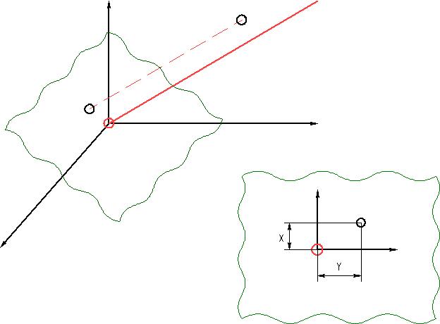 Плоскость проекции проходит через начало координат( но это не принципиально), наклон задает прямая, перпендикулярная плоскости, проходящая под углами к двум осям. Я нашел, только кратчайшее растояние от точки, до прямой. Заданы координаты точки и два угла, все остальные значения можно брать любые.