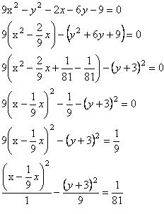 {[(x-(1/9))^2]/(1/81)}-{[(y+3)^2]/(1/9)}=1