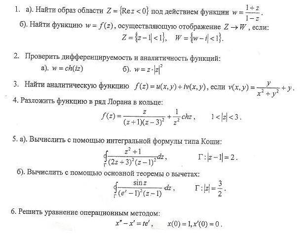 1) Найти образ области Z = {Rez < 0} под действием функции w = (1 + z) / (1 - z)