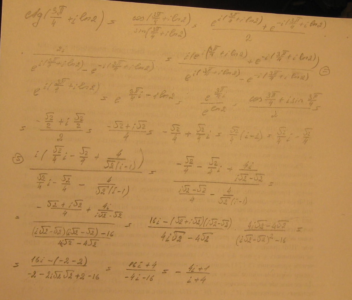 e^i(3Pi/4+iln2)=e^(i3Pi/4-ln2)=e^(i3Pi/4)/e^(ln2) =[cos(3Pi/4)+i*sin(3Pi/4)]/2=[sqrt(2)/4](i-1)