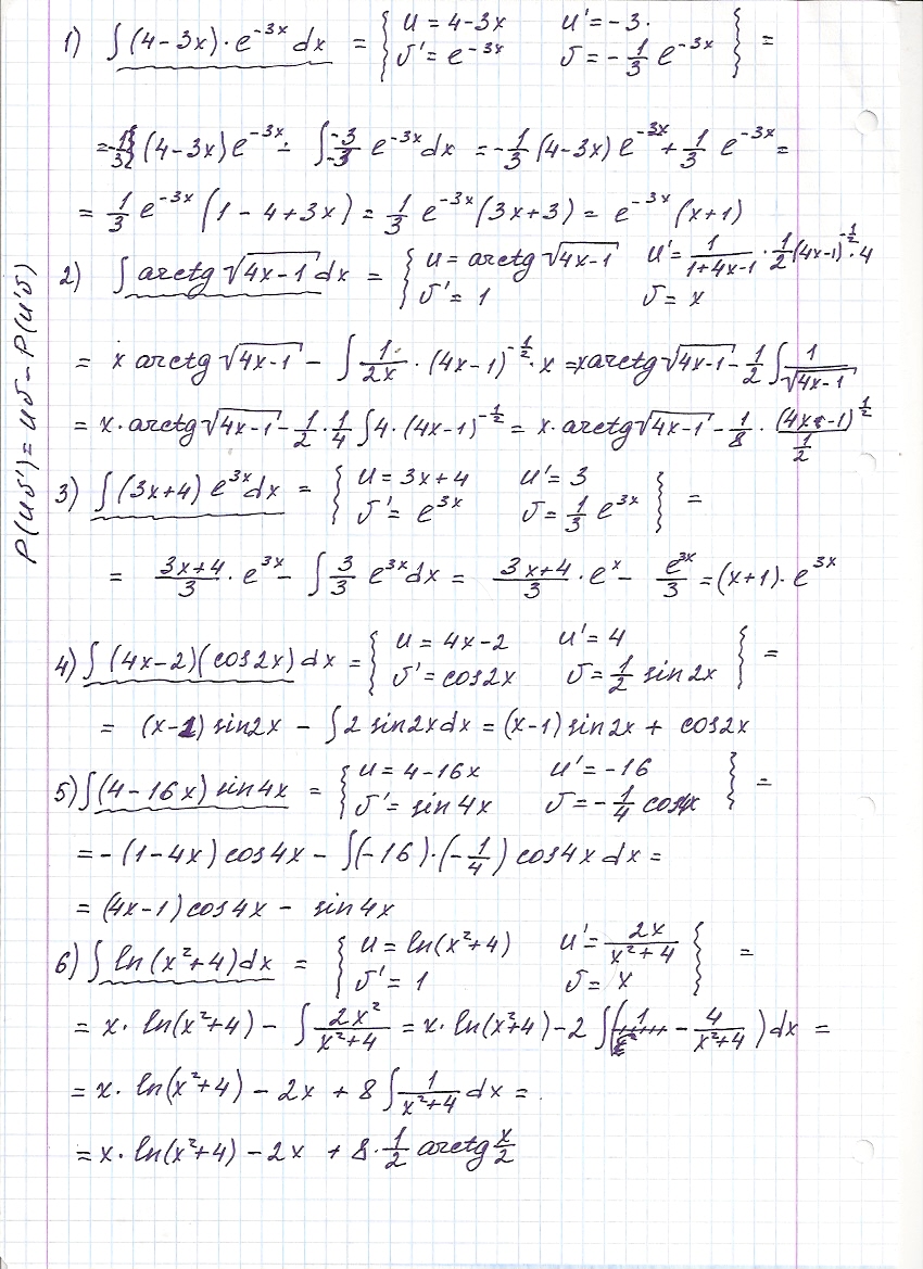 Я не стал открывать новую тему.Проверьте, пожалуйста,решение и этого интеграла и еще нескольких.Одно "но".Нас учат решать через первообразные,формулу я написал на полях,поэтому отсутствуют dU ,dV,но уверен что вам будет понятно